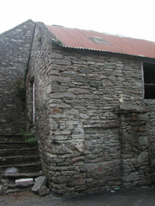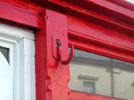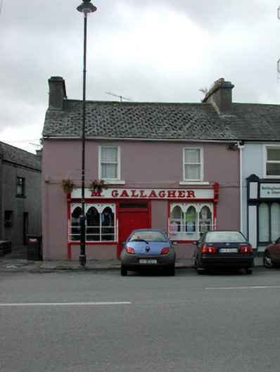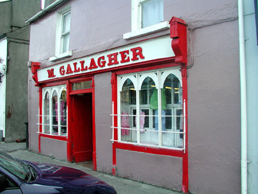This modest end-of-terrace house retains many of its original features, the most interesting of which is the timber shopfront. The building has stayed in the Gallagher family since the year it was built by Michael Gallagher. The shop originally functioned as a butchers. The surviving butcher hooks compliment the shopfront which provides a positive contribution to the streetscape. The attractive vernacular outbuilding to rear site is an interesting part of the architectural heritage of the town.