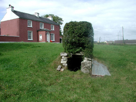 Detached three-bay two-storey house, built c.1820, with two-storey return to rear, single-storey extension to north-west and advanced canted bay entrance porch. Pitched tiled roof with rendered chimneystacks. Pebbledashed walls with rendered plinth. Timber sash windows with stone sills. Timber panelled door surmounted by fanlight. Niches to side walls of entrance porch. Random coursed four-bay two-storey stone outbuilding to rear site. House set within its own grounds with functioning well to east.