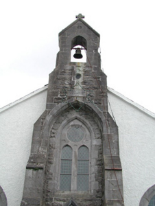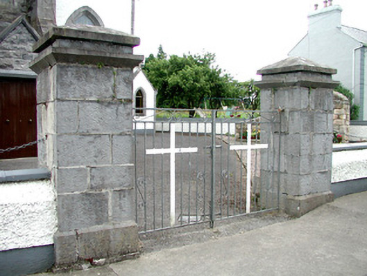 Detached cruciform-plan Roman Catholic church, built c.1815. Church comprises gable-fronted nave with two-bay transepts and a projecting gable-ended sacristy to rear. Gabled porches to transepts. Later projecting gable-fronted doorway to front elevation flanked by buttresses with bellcote above, built 1889. Pitched slate roof with stone coping, finials and bellcote to front elevation. Pebbledashed walls with rendered plinth, limestone dressed quoins, window and some door surrounds. Limestone kneelers to side and front porches. Random coursed front porch with limestone buttresses with pointed traceried traceried window above with roundel and lancets set in pointed-arched recess. Date plaque to front porch reads 'Erected to the memory of his Father and Mother by P.C. Morris 1889'. Pointed-arch windows some with chamfered surrounds and limestone sills. Ogee-headed window to sacristy. Square-headed door and pointed-arch door openings with timber battened doors. Modest interior with stained glass windows and exposed roof trusses. Plaque in wall commemorates members of the de Freyne and French family. Church is set back from road on a corner site. Graveyard to rear of church with grave markers dating from 1897 to 1980. Site bounded by pebbledashed and rendered wall with modern gates supported by dressed and coursed square-profiled gate piers with cornice and capstone. Cast-iron plaque to south east side of pier which reads 'These gates were presented by Dr J.W. Beirne, Frenchpark in memory of his parents Patrick and Ellen Beirne Ballaghaderreen. R.I.P 1930'.
