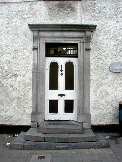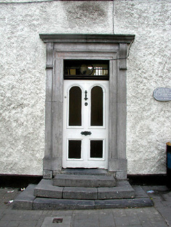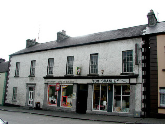 Terraced six-bay two-storey house, built c.1830, with shop to four bays of the ground floor. Pitched slate roof with rendered chimneystacks and cast-iron rainwater goods. Roughcast render to walls with rendered quoins and plinth course. Ashlar limestone pilasters to shopfront with timber fascia board, display windows flanking central timber panelled door with overlight and limestone threshold. Timber sash windows with stone sills. Timber panelled door to house with overlight, tooled limestone doorcase with console brackets supporting frieze and cornice. Limestone steps to entrance.