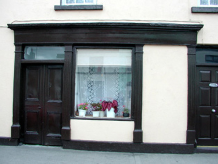 End-of-terrace three-bay two-storey house, built c.1800, with disused shopfront to ground floor. Pitched slate roof with rendered chimneystacks and cast-iron rainwater goods. Rendered walls with plinth and roughcast rendered walls to rear. Timber sash windows with stone sills and exposed sash boxes. Timber panelled door with overlight serving upper floors. Shopfront comprising timber panelled double doors, fixed pane display window with rendered stall risers and timber pilasters surmounted by fascia. House fronts onto street.