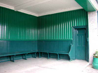 Castlerea Railway Station on the Sligo-Westport line was built by the Great Southern Railway Company. The waiting room, foot bridge and platform, forms a significant architectural group in Castlerea. The use of the rock-faced stone in the waiting room is used elsewhere in the station and creates uniformity within this railway complex. It is a fine example of late-nineteenth century railway architecture.