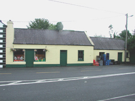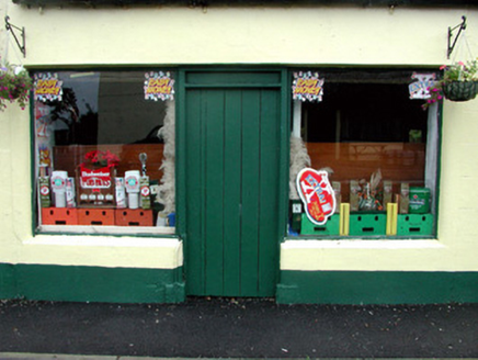 Detached three-bay single-storey house with shop, built c.1850, now used for storage. Abuts house to north-east and recessed outbuilding to south-west. Pitched slate roof with red brick and rendered chimneystacks. Cut stone coping to gable. Timber sash window with wrought-iron railing and stone sill. Timber battened doors with overlight to domestic entrance. Shopfront comprising timber battened door flanked by display windows. Building fronts onto street.
