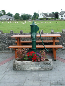 This water pump is located at a prominent position in Ballyforan on the corner of the Fair Green. It was once an integral feature within the locality, being used as a communal water source. This functional object expresses elements of design such as its curved handle, banded shaft, fluted cap and finial. These features underline it as an important and aesthetically pleasing piece of street furniture.