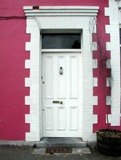 Detached three-bay two-storey house, built c.1865, with shopfront to ground floor, return and extensions to rear. Pitched slate roof with terracotta ridge tiles and rendered chimneystacks. Ruled-and-lined render to façade, render to rear and side elevations. Painted brick quoins to façade. Timber sash windows with stone sills and brick block-and-start surround. Timber panelled door with overlight and brick block-and-start surround with cornice. Timber shopfront to western bay with central timber and glazed double doors with overlight, flanked by a display windows. Brick block-and-start surround with cornice. Surviving original fittings to shop interior. Random coursed stone outbuilding to rear site. Building fronts onto street.