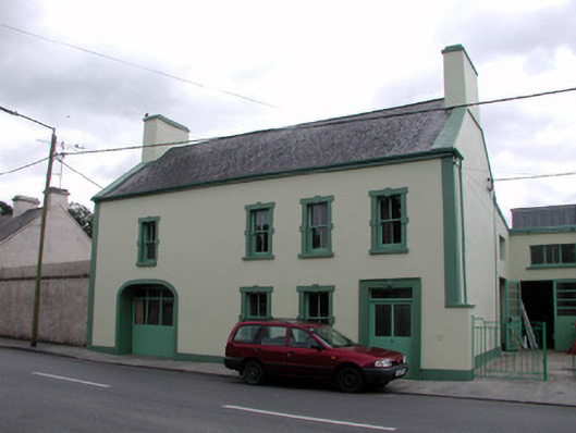 Detached four-bay two-storey house, built c.1830, with integral carriage arch to east and return to rear. Pitched tiled roof with rendered chimneystacks and cast-iron rainwater goods. Rendered walls with quoins. Tooled stone block-and-start surround to timber sash windows with stone sills. Stone architrave to entrance with decorative shell motif. Glazed timber door with overlight. Building fronts directly onto street.