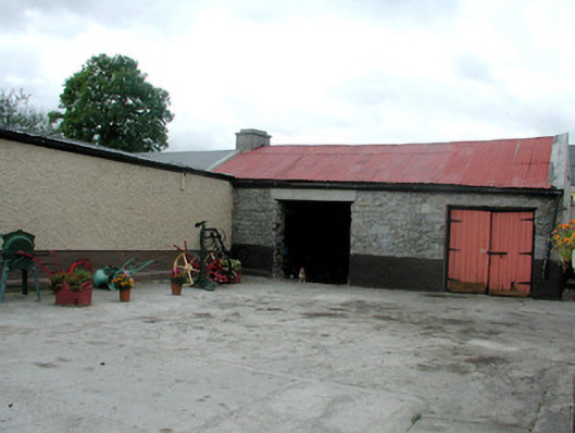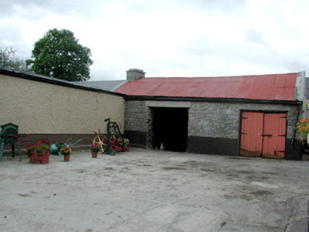 Pair of terraced two- and three-bay two-storey houses, built c.1850, with extension to rear. Pitched slate roofs with rendered chimneystacks, coping, terracotta ridge tiles and cast-iron rainwater goods. Rendered walls with pebbledash to first floor. Timber sash windows with stone sills. Timber panelled doors with overlights. Rendered and stone outbuildings to rear site with wrought-iron gates leading to farm.