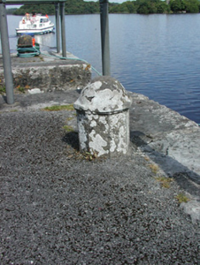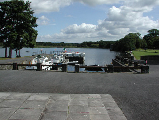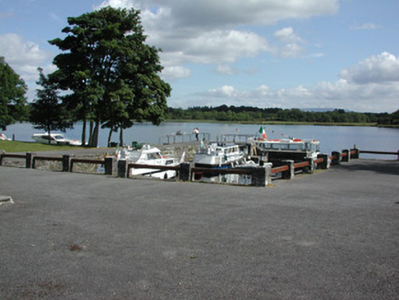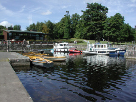 U-plan harbour on shore of Lough Key, built c.1810, with later section to the southern side of north quay. Harbour comprising stepped quays with random coursed limestone walls with cut limestone steps. Wrought-iron mooring posts and dressed octagonal mooring posts with domed caps. Bounded by modern railings.