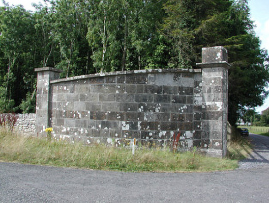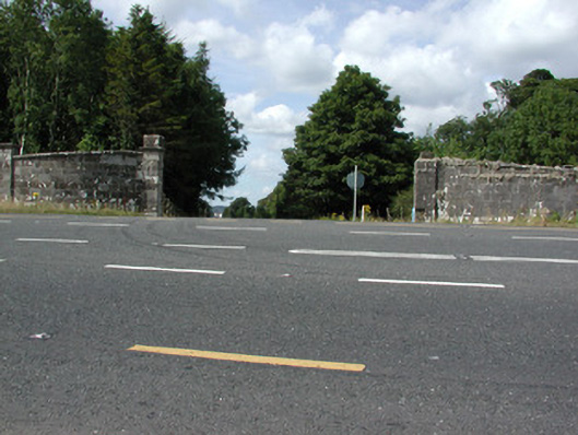 An impressive set of gate piers with an intact stretch of demesne wall associated within the former Rockingham Estate. Although partially damaged and rebuilt, they recall the former entranceway's grandeur.