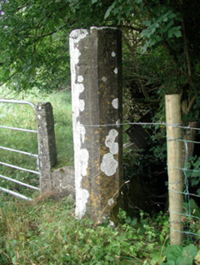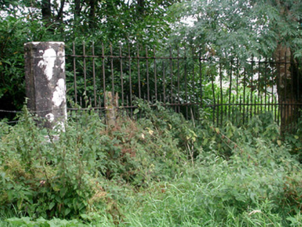 The simple form of these surviving gate piers is in contrast with the larger main entrance gates to the demesne. The surviving wrought-iron railings contribute to the otherwise unadorned entrance.