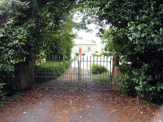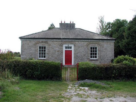 Detached three-bay single-storey former head gardener's house, built c.1825, with extensions and outbuildings to rear. Hipped slate roof with ridge tiles and central rendered chimneystacks. Catslide roof to rear extension. Coursed cut sandstone facade with dressed plinth. Central door and windows set in segmental-headed recessed arches with cut stone voussoirs. Random coursed side and rear elevations. Replacement timber sash windows. Timber panelled door with overlight. Timber surround to door comprising pilasters and cornice. Limestone threshold to door. Roughcast-rendered outbuildings. Wrought-iron pedestrian gate and piers to front of house. Entranceway comprised of cut stone gate piers with wrought-iron gates. House located in mature grounds opposite the former Rockingham Estate.