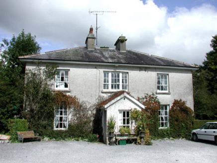 Detached three-bay two-storey Board of First Fruits Church of Ireland glebe house, dated 1805; built 1807, with projecting gable-fronted porch, rear return and extensions. Hipped slate roof with over-sailing eaves, rendered chimneystacks and terracotta pots with cast-iron rainwater goods. Pebbledashed walls with timber panelled door to front porch. Timber sash windows with some replacement windows to side and rear. Wyatt window above porch. Stone sills to windows. Timber panelled door to front porch. Walled yard to rear with L-plan range of outbuildings and lean-to shed. Pedestrian gate piers to east side of house comprising limestone gate piers with wrought-iron gate. House set in mature gardens enclosed by stone wall. Entranceway comprise limestone gate piers with bench mark to base of east pier. Modern date plaque to west side of gates.