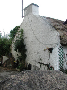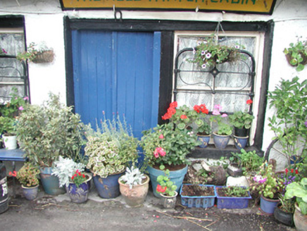 Detached six-bay single-storey house, built c.1820, with disused pubfront. Pitched thatched roof with rendered chimneystacks. Rendered walls. Timber sash windows with stucco surrounds, stone sills and cast-iron window guards. Timber battened door with tiled step serving living quarters. Pubfront comprising a fixed pane window and timber battened double doors. House fronts onto street.