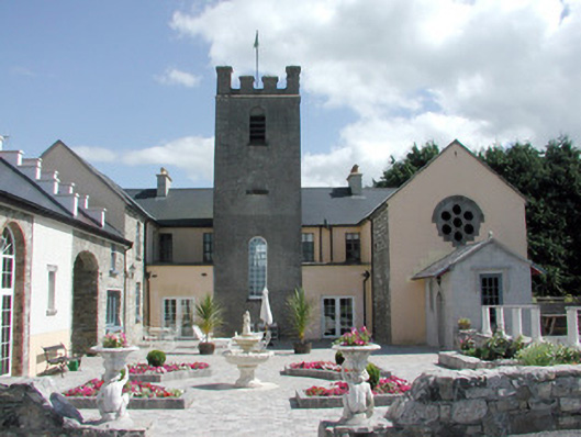 Detached seven-bay two-storey former Franciscan monastery, built c.1857, with projecting gabled end bays to front and rear elevations and crenellated three-stage tower to rear elevation. Vacated by the order of Franciscan monks c.1971 and now in use as a private dwelling. Pitched slate roof with rendered chimneystacks. Rendered walls with rendered quoins and date plaque and emblem of the order to front elevation. Niches to projecting gabled bays. Square-headed window openings with tooled stone sills and replacement timber casement windows. Square-headed door opening with timber panelled door and overlight. Former chapel in monastery located in south-west projecting end bay. Rendered entrance porch and decorative rose window to rear elevation wall. Outbuildings to rear yard now in use as artists studio. Shrine to the Virgin Mary at entrance gates.