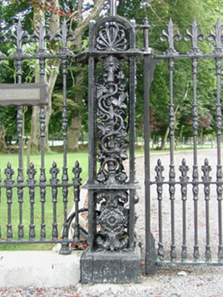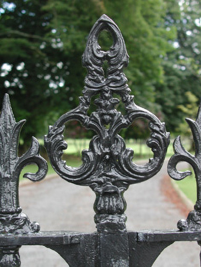 The absence of external decoration to Cargins Park creates a striking simplicity and is enforced by the plain concrete columns on the entrance porch. This contracts with the elaborate decorative cast-iron entrance gates and tree-lined winding avenue which provides the grand entrance to this county house.