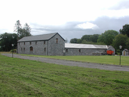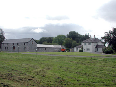 Detached three-bay two-storey country house, built c.1850, with entrance porch, return to rear and single-storey projecting bays to side elevations. Renovated c.2002. Hipped slate roof with rendered chimneystacks and cast-iron rainwater goods. Pebbledashed walls on nap plinth. Timber sash windows and tooled limestone sills. Round-headed door opening set in porch flanked by Doric columns and accessed by concrete steps. Single- and two-storey stone restored outbuildings in use as guest accommodation. Remains of walled garden to south of house. House accessed through decorative cast-iron gates and up a tree-lined avenue.