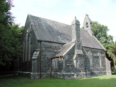 Detached Church of Ireland church, built in 1854, to a Gothic Revival design by Joseph Welland. Church comprises four-bay nave, porch and bell-ringing room to north-west and vestry to south-east. Pitched slate roof with stone ridge tiles, stone coping to gables and cast-iron rainwater goods. Ashlar bellcote to south-west gable with cast-iron bell and chain, which descends to opening in stone roof of projecting bell-ringing room. Chimneystack to vestry. Random coursed rock-faced cut limestone walls with buttresses. Pointed-arched, trefoil and square-headed window openings with tooled stone surrounds and cast-iron diamond-paned windows. Pointed-arched opening to porch and shouldered-arched opening to vestry with tooled stone surrounds and studded timber battened doors with cast-iron door furniture. Doors accessed by stone steps. Grave markers to graveyard. Site is enclosed by roughcast-rendered wall with stone stile, ashlar gate piers and cast-iron gates.