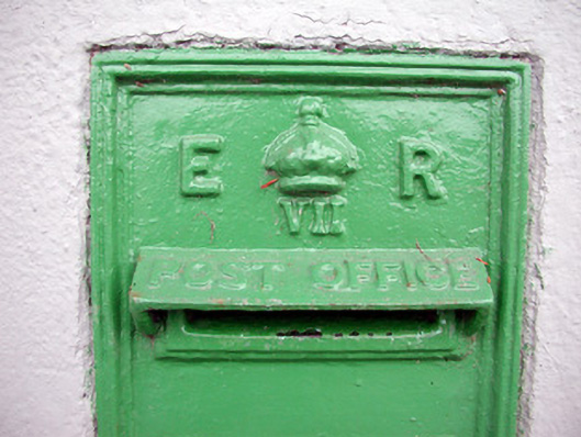 This cast-iron post box is an important item of communications infrastructure. The insignia, referring to the penultimate British monarch to reign over Ireland is a reminder of our historic past.