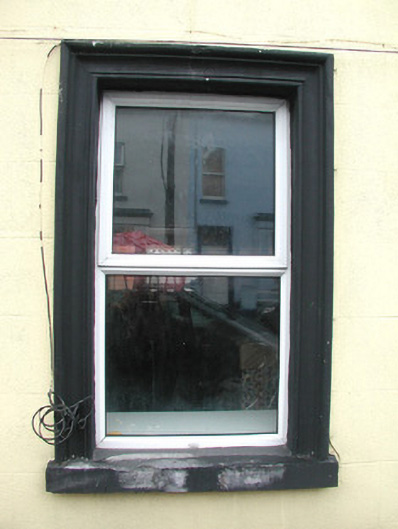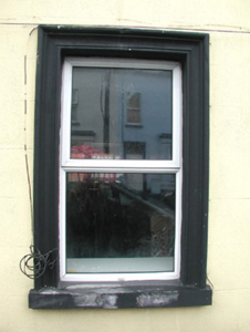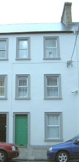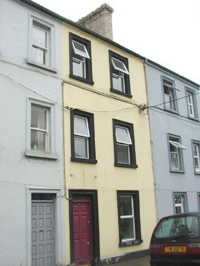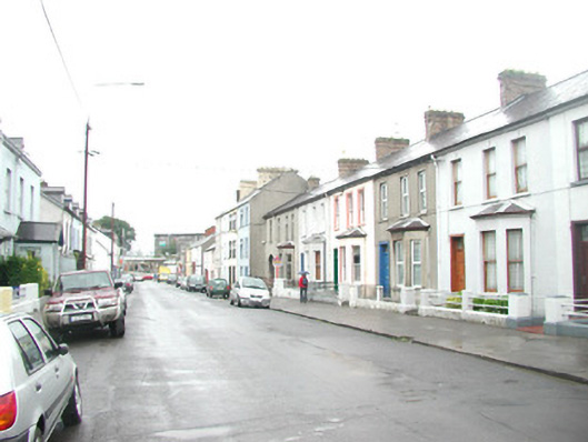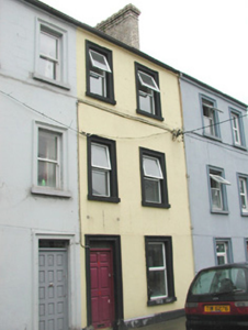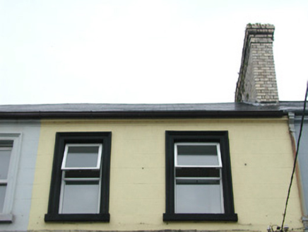 Terraced two-bay three-storey rendered house, built c. 1870. One of a group of four. Pitched artificial slate roof, artificial ridge tiles, corbelled yellow brick chimneystack, extruded aluminium gutters. Painted ruled-and-lined smooth-rendered walls, painted dressed stone plinth. Square-headed window openings, moulded surrounds, painted stone sills, uPVC casement windows c. 2003. Square-headed door opening, moulded surround on plinth blocks, plain-glazed fanlight, painted timber six-panel door c. 2003. Street fronted.