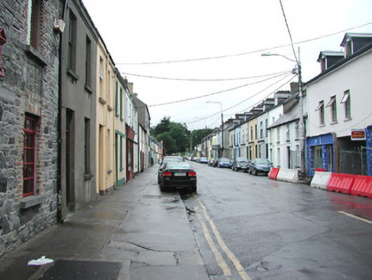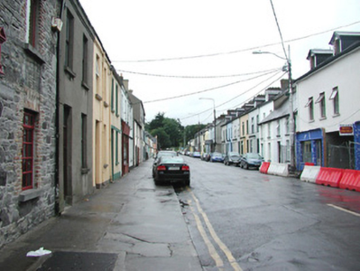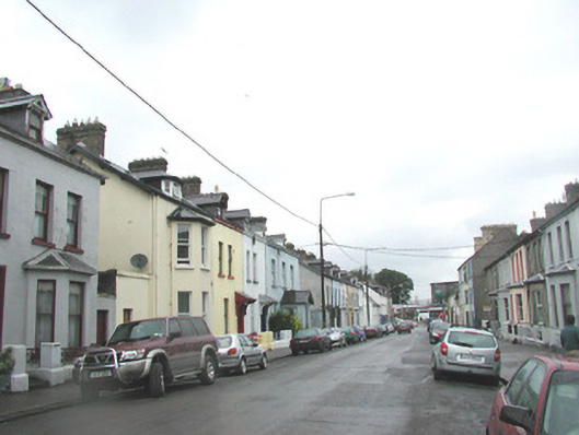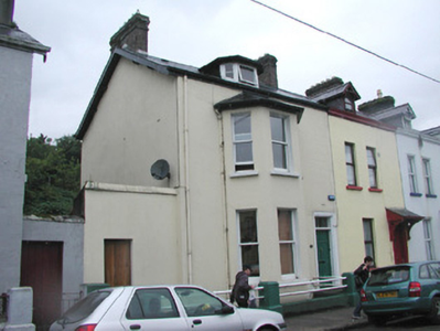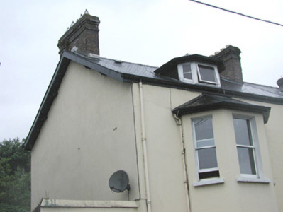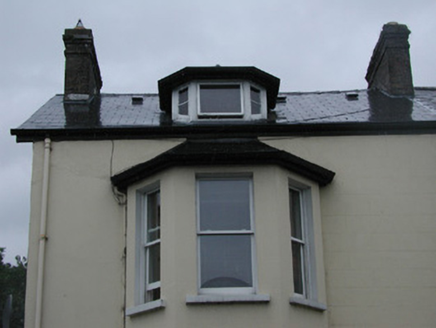 End-of-terrace two-bay two-storey rendered house with canted dormer attic, built c. 1890, with two-storey canted bay window and single-storey side extension to south c. 1990. One of a group of four. Pitched artificial slate roof, artificial ridge tiles, painted timber dormer, red brick corbelled chimneystack, painted timber barge boards, uPVC and cast-iron rainwater goods. Painted ruled-and-lined smooth-rendered walls. Square-headed window openings, painted masonry sills, painted timber one-over-one sash windows to ground and first floor, painted timber casements to attic dormer. Square-headed entrance door opening, moulded rendered surround, painted timber six-panel door c. 1990, plain-glazed overlight. Square-headed side door opening, hardwood vertically-sheeted door. Front garden bounded by tubular metal railings on painted smooth-rendered plinth wall.