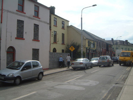 Attached two-bay three-storey rendered house, built c. 1820. Lower properties to either side. Now in use as a commercial office. Pitched slate roof, cement verges to gables, clay ridge tiles, unpainted smooth-rendered corbelled chimneystacks, cast-iron gutters on eaves corbel course, cast-iron downpipe with cast-iron hopper to lower section. Painted smooth-rendered walls. Square-headed window openings, painted stone sills, painted timber multi-paned casements, c. 1980. Round-headed door opening to ground floor east, with Regency 'teardrop' fanlight, painted timber three-panel double doors c. 1980. Set back from street with small garden area to front west bounded by wrought-iron railings on painted smooth-rendered walls with segmented coping.