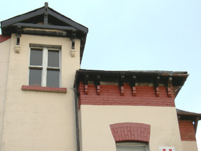 This decorative house is part of a distinctive group which lend contrast, variety and appeal to the street. Original roof trims, windows, canopied entrance and details such as the boot scraper all contribute to the appeal.