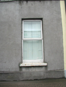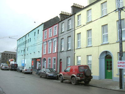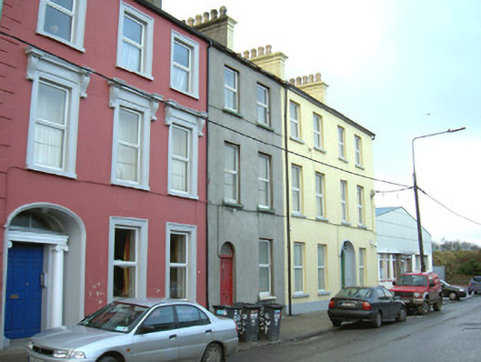 Terraced two-bay three-storey rendered house, built c. 1850. Pitched artificial slate roof, unpainted smooth-rendered corbelled chimneystack with octagonal yellow clay pots, cast-iron gutters. Unpainted smooth rendered ruled-and-lined walling on projecting plinth. Square-headed window openings, painted sills, uPVC casement windows c. 1990. Round-headed door opening to east side of north elevation (main), plain-glazed fanlight, painted timber four-panel door. Street fronted.