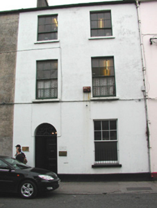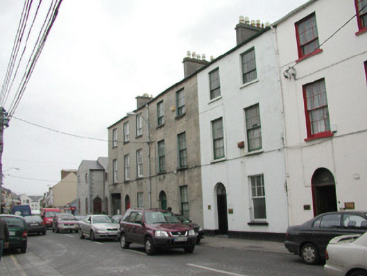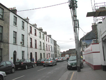 Terraced two-bay three-storey rendered house, built c. 1830. One of a group of eight. Now in use as offices. Pitched slate roof, unpainted rendered corbelled chimneystack, aluminium rainwater goods, c. 1960. Painted rendered walls with limestone plinth course. Square-headed window openings, painted stone sills, six-over-one painted timber sash window with wrought-iron guard to ground floor, six-over-six to first floor and six-over-three to second floor. Semi-circular-headed door opening with decorative replacement fanlight, c. 2000, over painted timber double doors with raised-and-fielded panels. Single stone step to front. Street fronted.