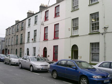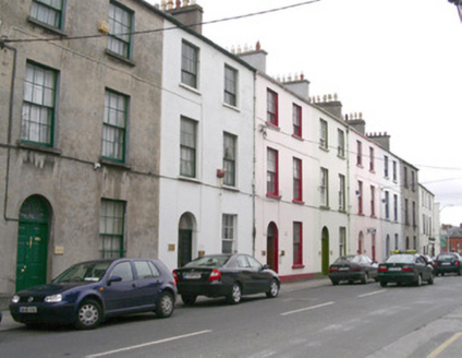 Terraced two-bay three-storey rendered house, built c.1830. Forms part of a group of eight, now in use as offices. Pitched slate roof, unpainted rendered chimneystack with yellow terracotta chimney pots, metal rainwater goods. Painted rendered walls on painted stone plinth. Square-headed window openings, painted reveals, painted stone sills, six-over-one painted timber sash windows to ground floor (with wrought-iron sill guard), six-over-six to first floor and six-over-three to second floor. Semi-circular-headed door opening containing plain fanlight over hardwood panelled double doors with brass door furniture. Stone threshold. Street fronted.