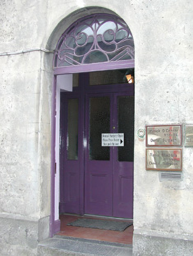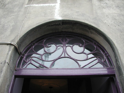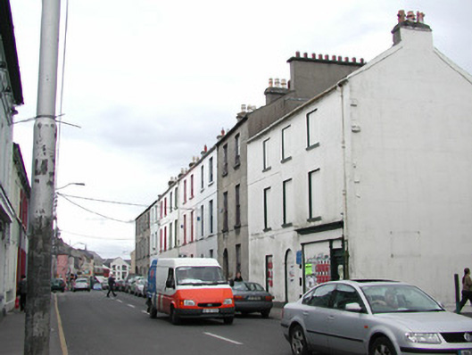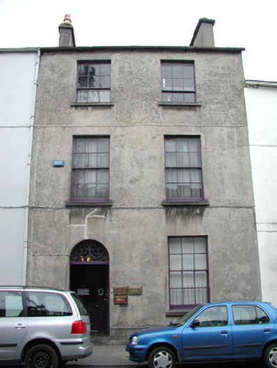 End-of-terrace two-bay three-storey smooth rendered house, built c. 1830. Built as one of a group of eight houses. Now in use as dental surgery. Pitched slate roof, unpainted rendered ten-pot chimneystack, cast-iron rainwater goods. Unpainted ruled-and-lined rendered walls with stone base plinth. Square-headed window openings with smooth rendered reveals, stone sills, six-over-six painted timber sash windows to ground and first floor, six-over-three to second floor. Iron window guard to ground floor. Semi-circular-headed door opening, painted timber panelled door, ornate fanlight over, single stone threshold step. Street fronted.