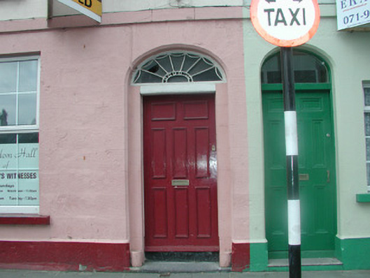 This building occupies an important position opposite one of Sligo's finest public buildings, the Town Hall. The painted stone front to ground floor adds texture to the terrace which is enhanced by the decorative fanlight and the unusual chamfered backset at ground floor.