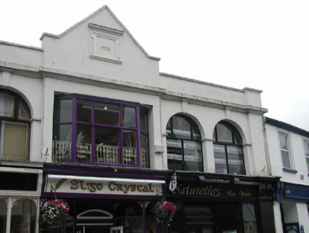 Corner-sited five-bay two-storey commercial premises, built 1906, attached at north rear to adjoining hotel and at east to two-storey terrace. In use as four retail outlets. Symmetrically composed front (south) elevation with shopfronts at ground floor and, at first floor, central section with two round-headed windows, flanked by breakfront sections with oriel windows with gables over, flanked by sections identical to the centre section. Pitched artificial slate roof set behind gables and parapet to front elevation, artificial ridge tiles, uPVC profiled gutter, c. 1995, to rear. Painted rendered walls, plain concrete verge and parapet copings, datestones with hood mouldings set within eared architrave frames inscribed '1906' to twin gables, rendered string course to base of parapet supported by window keystones, chamfered stone base plinths. Painted timber round-headed windows, c. 1995 and square-headed oriel windows to first floor. Four painted moulded timber shopfronts to main elevation returning to Fish Quay, each with recessed doorways between glazed display bays, painted timber corbelled fascia signs over with original awning operating gear. Street-fronted to south and west.