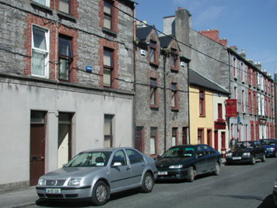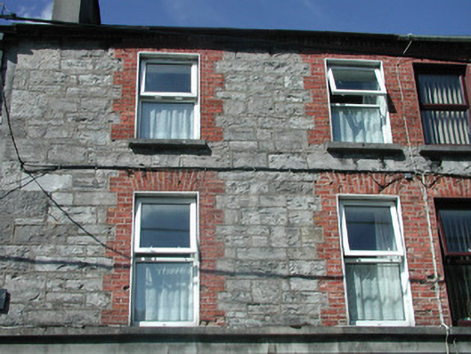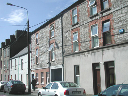 Semi-detached two-bay three-storey house, built c. 1880. Now incorporated as part of a row of, similarly detailed, properties. Pitched artificial slate roof, red brick chimneystack with clay pots, cast-iron gutters on corbelled brick eaves. Squared limestone walling to upper floors, unpainted finely-textured roughcast render to ground floor bordered by rendered first floor sill course, plinth and margins. Square-headed window openings, red brick block-and-start surrounds to upper floors, smooth render projecting reveals to ground floor, stone sills, uPVC casement windows c. 2000. Square-headed door opening, smooth render projecting reveals, painted timber panelled door c. 1990, rectangular overlight with patterned glazing. Street fronted.