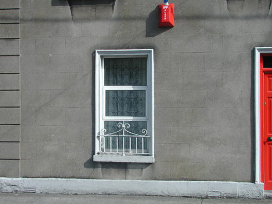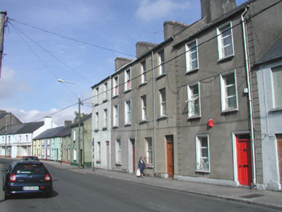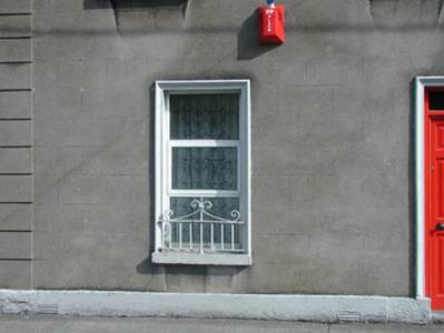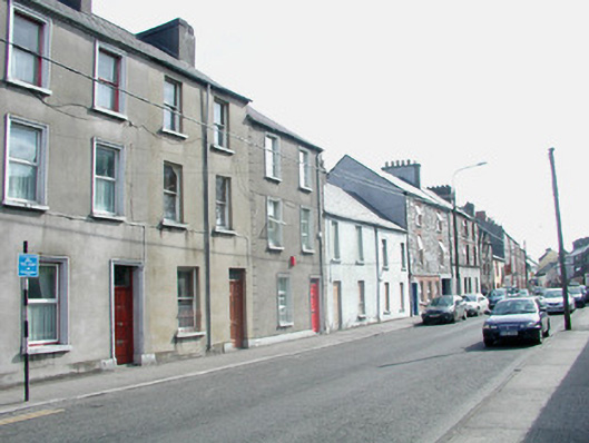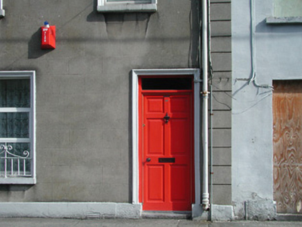 Attached two-bay three-storey rendered house, built c. 1880. Pitched slate roof, unpainted rendered chimneystack, cast-iron rainwater goods. Unpainted ruled-and-lined rendered walls, straight banded quoins, painted stone plinth. Square-headed window openings, painted moulded render window surrounds, painted stone sills, uPVC casement windows c. 1990, wrought-iron window guard to ground floor. Square-headed door opening, painted moulded render surround, painted timber six-panel door, plain-glazed overlight. Street fronted with terrace ridge line stepping up to west and down to lower terrace to east.