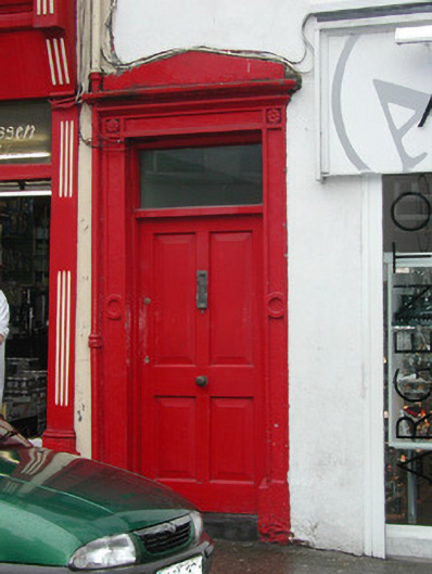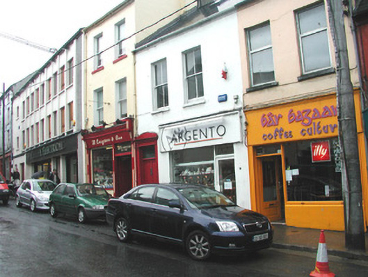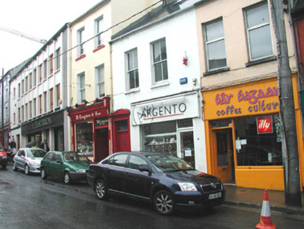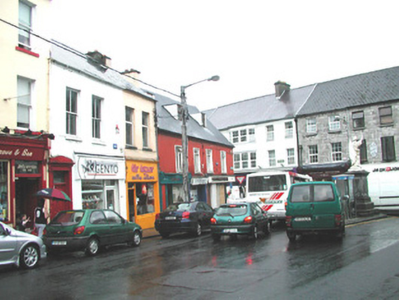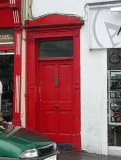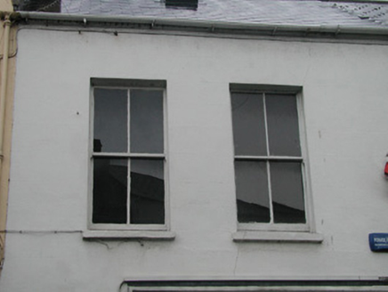 Terraced two-bay two-storey rendered house with ground floor shop premises, built c. 1890. Access door to first floor located to south of frontage. Now in commercial use. Pitched artificial slate roof, roof light on front slope c. 2000, cast-iron rainwater goods. Painted smooth-rendered front wall. Square-headed window openings to first floor, painted stone sills, two-over-two painted timber sash windows. Plain rectangular fascia sign over aluminium shopfront c.2000. Square-headed door opening with painted timber surround consisting of ducart panels supporting pedimented cornice, plain overlight, painted timber four-panel door. Street fronted on slight incline.