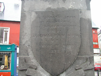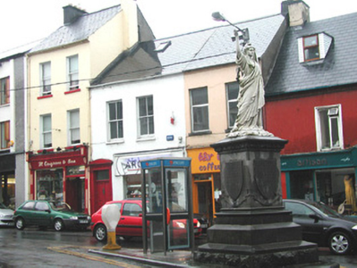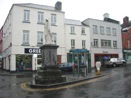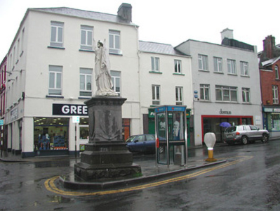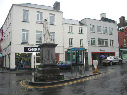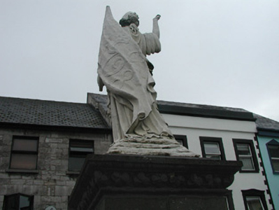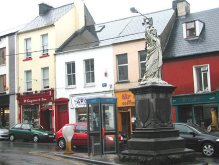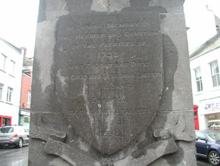 Freestanding marble statue, erected 1899, comprising female figure on limestone pedestal and plinth. Statue bearing banner inscribed '1798', cornice with carved shamrock motif. Commemorative texts inscribed in dado record date of laying of foundation stone, October 3rd 1898, and date of unveiling of monument, 9th September 1899. Situated at former market place intersection of Grattan and Market Streets. Bouding plinth wall, railings, corner posts and lamps now lost.