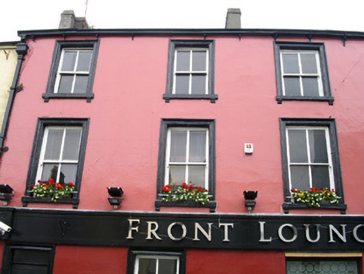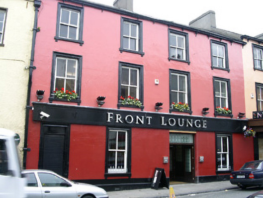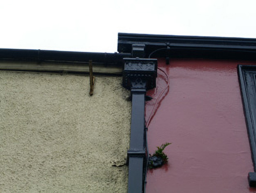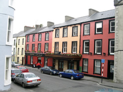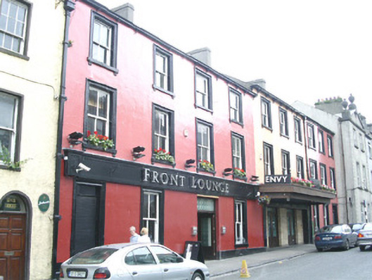 Terraced seven-bay three-storey smooth-rendered commercial building, built c. 1885, formerly two separate but similar properties. Pitched slate roof, plain clay ridge tiles, cement-rendered corbelled chimneystacks on ridge, moulded cast-iron gutters on decorative iron corbel brackets. Painted ruled-and-lined smooth-rendered walls, rectangular cast-iron downpipe with decorative brackets. Full-width painted timber sign fascia, c. 2000. Square-headed window openings with painted moulded architraves, painted masonry sills with corbels below, two-over-two painted timber sash windows with some original cylinder glass surviving. Square-headed entrance, c. 2000 with varnished hardwood double doors and overlight, all glazed with etched glass. Property fronts street with no access to rear.