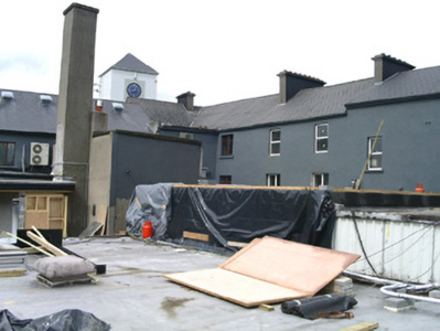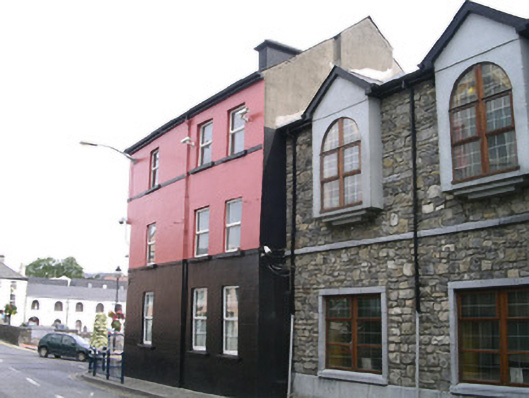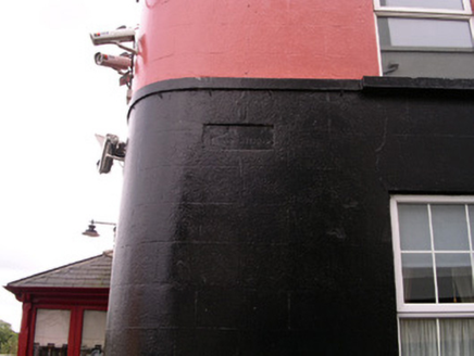 Attached corner-sited five-bay by three-bay three-storey over basement smooth-rendered building, built c. 1782. 'L' shaped on plan with rectangular single-storey porch projecting from north elevation and various flat-roof extensions to rear. Now in use as hotel. Pitched artificial slate roof forming hip to corner, with three painted, smooth-rendered corbelled chimneys on ridge, clay ridge tiles, painted extruded moulded aluminium gutters on timber fascia on projecting eaves course. Painted ruled-and-lined smooth-rendered masonry walls with sill string courses at first and second floors. Square-headed window openings, painted masonry sills, uPVC windows. Three-bay glazed timber entrance porch on raised base, hipped slate roof with lead hip rolls and flat cap surmounted by cast-iron railing. Painted timber rectangular columns with chamfered topped mouldings and moulded plinth blocks, chamfered beam lintels, fixed painted timber lights each with vertically sheeted panel under. Porch approached by straight flight of steps from east side. Two, dated, street name plaques on rounded north-west corner. Street fronted on both elevations.
