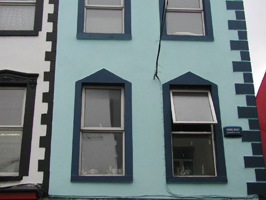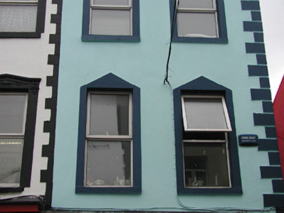 Corner-sited end-of-terrace two-bay three-storey smooth-rendered public house, built c. 1840, formerly with residential acommodation above. Pitched slate roof, moulded uPVC gutters on painted timber fascia c. 1990, cast-iron downpipe to east elevation. Painted smooth-rendered walls, painted render channelled quoins to south-east corner. Square-headed window openings to upper floors, painted smooth-rendered window surrounds with basic pediments, painted masonry sills, uPVC replacement casement windows c. 2000. Fluted and moulded wood-grained timber pilasters, painted timber fascia sign board, square-headed display window with wood-grained timber diagonally-sheeted shutters, green vitrified-tile plinth. Square-headed door opening to west, wood-grained timber two-panel double doors, plain-glazed overlight, encaustic tile threshold. Situated at the corner of Grattan Street and a narrow lane leading to Rockwood Parade.