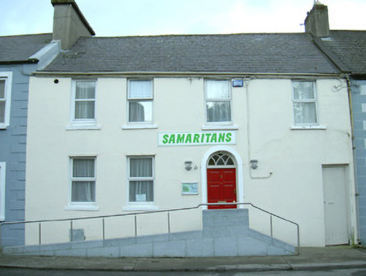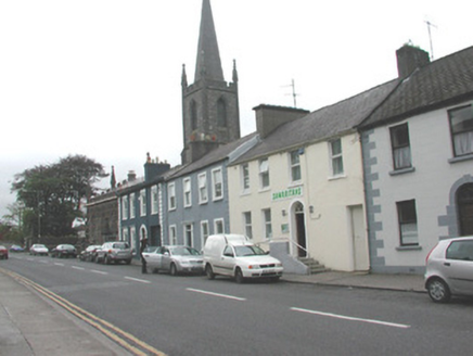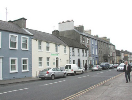 Terraced four-bay two-storey rendered house, built c. 1830. Main entrance door offset to west suggests may originally have been two properties, secondary door leading to rear to west, access ramp c. 2000. Now in commercial use. Pitched slate roof, unpainted smooth-rendered chimneystacks, half-round cast-iron gutters. Painted smooth-rendered ruled-and-lined walls. Square-headed window openings, painted masonry sills, one-over-one uPVC casement windows c. 1995. Round-headed door opening, raised smooth-rendered surround, original fanlight, painted timber six-panel door c. 2000. Doorway accessed by four stone steps. Square-headed door opening, painted timber vertically-sheeted door accessing rear yard at west. Street fronted.
