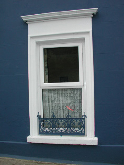 This attractive terraced house retains its rendered details, carriage arch doors and fine cast-iron sill guards.
