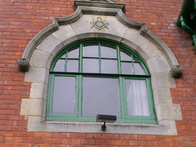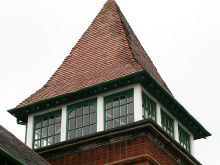 Designed by the architect Mr. Henry Seaver from Belfast and built by Sligo man Mr. George Kerr in 1895, this distinctive building, sited on rising land, is a prominent local landmark, whose location set back from the street, allows for a fuller appreciation of this finely executed building. Brickwork and stone detailing are competently executed but the piece-de-resistance is the tower with its richly moulded terracotta frieze, stone cornice, lantern and tiled roof. It is one of a small number of good quality brick Arts and Crafts buildings in the town, notably the Yeats Memorial Building by Vincent Craig.