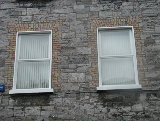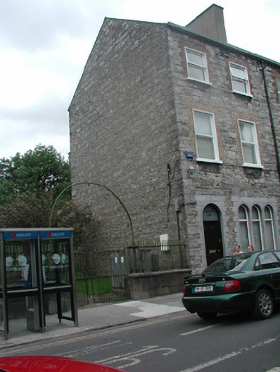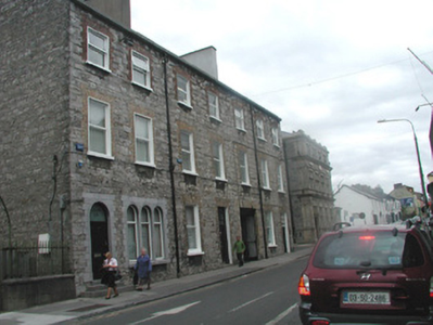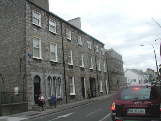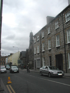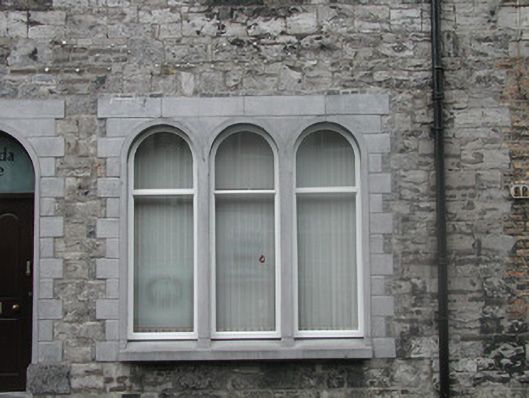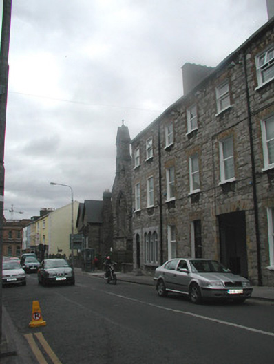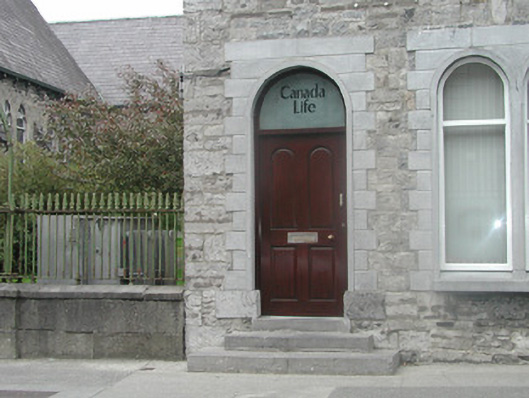 End-of-terrace two-bay three-storey stone house, built c. 1860. One of a group of three. Now in use as offices. Pitched artificial slate roof c. 2000, rendered chimneystack, square profile gutters, cast-iron downpipe. Exposed squared limestone walls. Square-headed window openings to upper floors, brick dressings, painted reveals, painted stone sills, uPVC casement windows c. 2000. Triple round-headed window openings to ground floor to east, fixed pane painted timber windows c. 2000. Round-headed entrance, limestone surround, plain-glazed fanlight, hardwood panelled door c. 2000. Three stone steps to entrance. Street fronted, located to east of neigbouring church grounds.