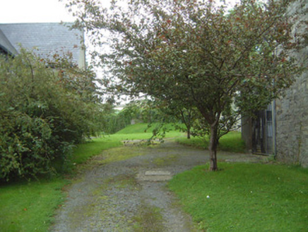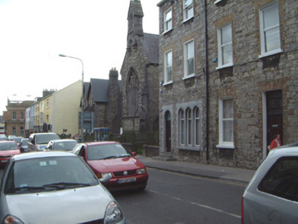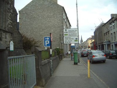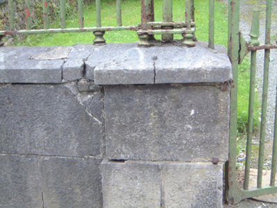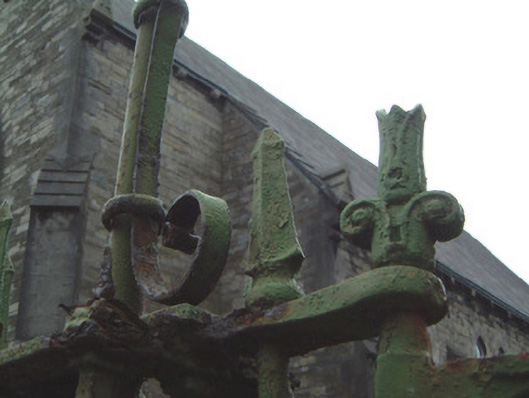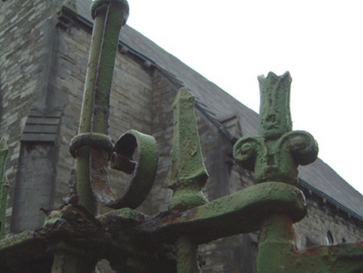 Entrance gateway and railings, built c. 1850. Wrought-iron with cast-iron embellishments, railings on limestone ashlar plinth wall. Gates surmounted by arch having wrought-iron spiral decoration. Gateway attached to property to east and to churchyard boundary wall to west. Leads to small grassed area with gravel pathway.