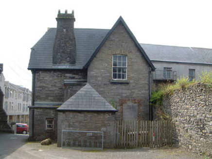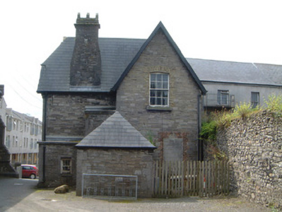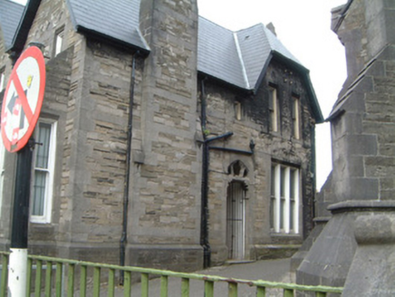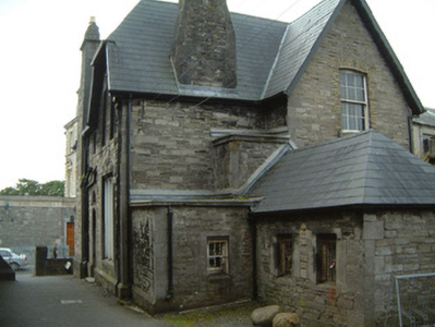 Detached two-bay two-storey limestone former manse, built c. 1867, with single-height rectangular-plan bay window projecting to south, gable-fronted two-storey projecting bay and two-bay single-storey L-plan return to north, and entrance on east elevation. Now in use as County Museum. M-profile pitched slate roof with half-hipped projecting section to north-east, hipped slate roof to return with flat felt-covered roof to eastern section, overhanging eaves with timber soffits, limestone chimneystacks, cast-iron rainwater goods. Rubble limestone masonry walls with smooth-faced and sparrow-pecked limestone ashlar quoins and dressings. Square-headed window openings with limestone ashlar surrounds having trefoil ornament to south elevation, chamfered reveals, painted timber one-over-one sash windows, six-over-six sash window to north elevation. Pointed-arched door opening to east elevation comprising recessed porch framed by limestone ashlar surround with open limestone tracery to overlight, tiled flagstone, limestone step, painted timber panelled and glazed door, surmounted by plain-glazed overlight. Manse set in grounds of Gothic Revival Congregationalist church, with limestone ashlar boundary wall having scroll-capped gate piers and wrought-iron gate with cast-iron finials c. 1890 to south.
