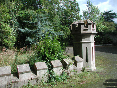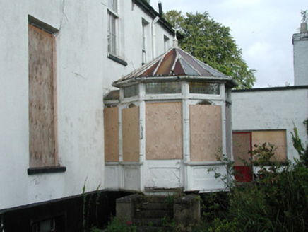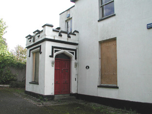 This rambling house is located on the site of an earlier house known as Ellenville part of which may have been absorbed into the present building. Basically classical in style, it also has a Tudor Gothic porch and gate screen. The late-Victorian sun room is elaborately detailed. Original sash windows survive. Cobbled surfaces around the entrance porch are also of interest.