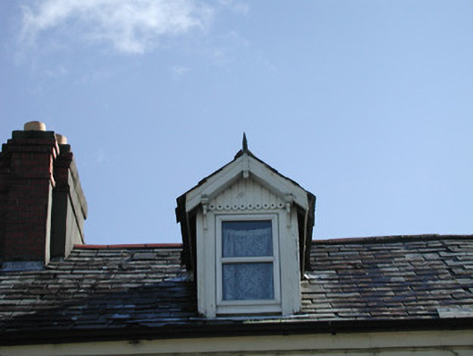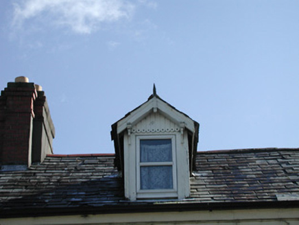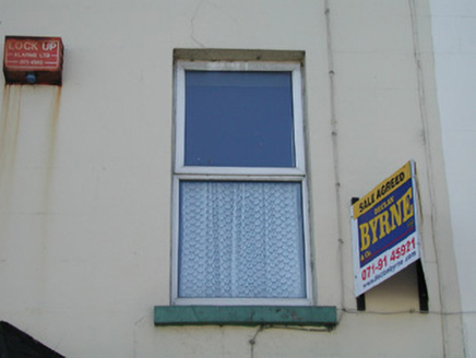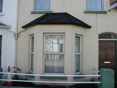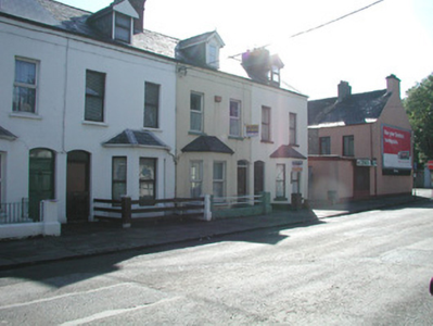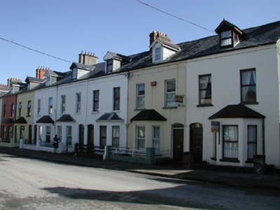Terraced two-bay two-storey with dormer attic rendered house, built c. 1890. One of a group of nine. Bay window to north end of west elevation. Pitched slate roofs, clay ridge tiles, painted vertical scalloped timber sheeting to dormer front with barges and finial carried on profiled corbel brackets, red brick corbelled chimneystack, cast-iron half-round gutters on eaves corbel course, moulded cast-iron gutters to bay, wood-cored lead hip cappings to bay roof. Painted smooth-rendered ruled-and-lined walling. Square-headed window openings, painted masonry sills, uPVC casement windows c. 1995. Segmental-headed door opening, plain-glazed overlight, hardwood panelled door. Small enclosed area to front bounded by tubular metal fence spanning between painted smooth-rendered piers.