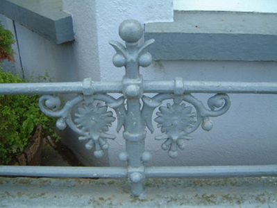 This modest house is part of a small group modulated by full-height canted bays and enlivened by fine cast-iron railings of considerable artistic interest.