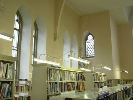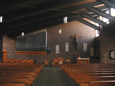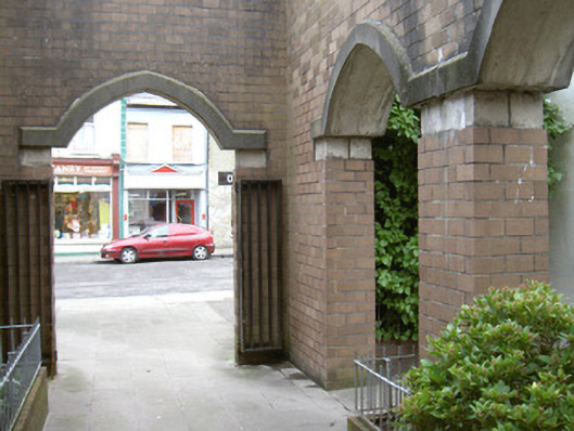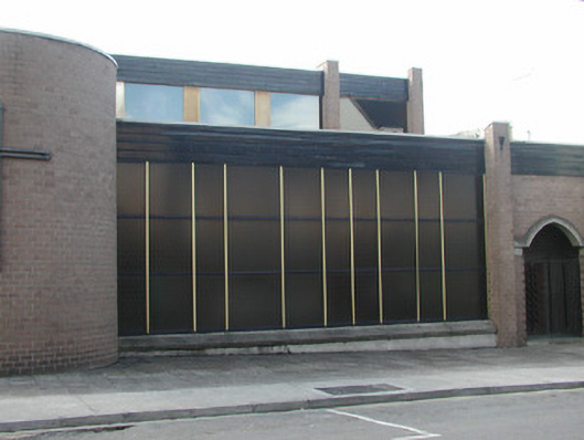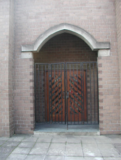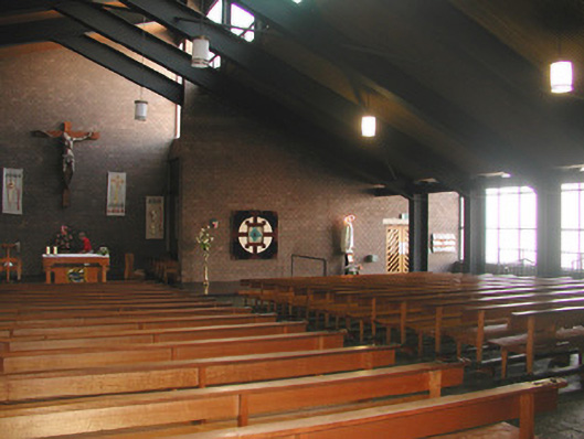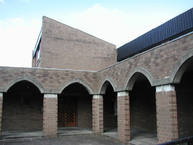 This church, designed by architect Pearse MacKenna (1917-2002), uses an interesting design and contemporary materials in an uncompromising and refreshing way. The church is linked, via a cloister, to the surviving chancel of a Gothic Revival church (1845-8) by Sir John Benson (1812-74) (see 32012009).