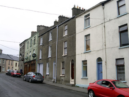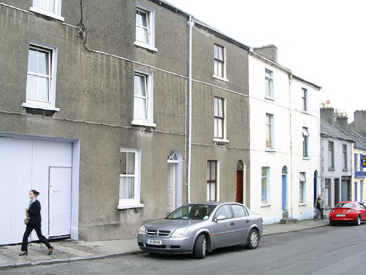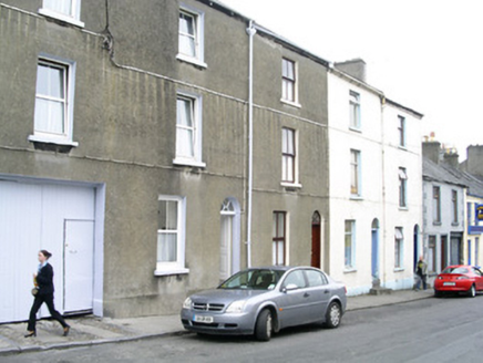 Terraced one-bay three-storey rendered house, built c. 1860. Part of a terrace of four. Pitched slate roof, unpainted smooth-rendered corbelled chimneystack, cast-iron gutters on drive-in brackets on corbelled eaves course. Unpainted smooth-rendered ruled-and-lined walling. Square-headed window openings, painted reveals, painted masonry sills, varnished hardwood casement windows. Round-headed entrance doorway, hardwood panelled door c. 1990, sunburst fanlight. Street-fronted on hill.